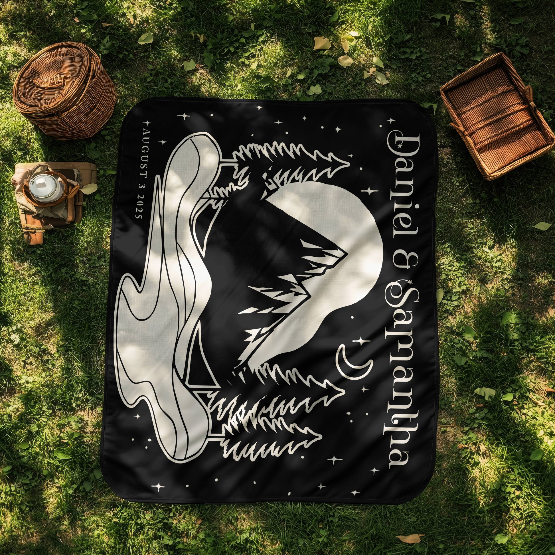 Stay cozy, comfy and dry on your next camping trip with the Celestial Escape Blanket. Featuring a mountain night scene complete with customizable name and date. Enjoy the comfort and durability of our expertly crafted blanket.