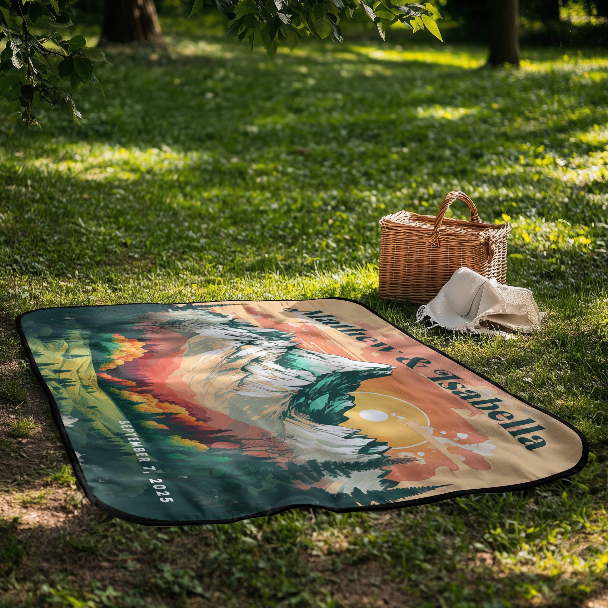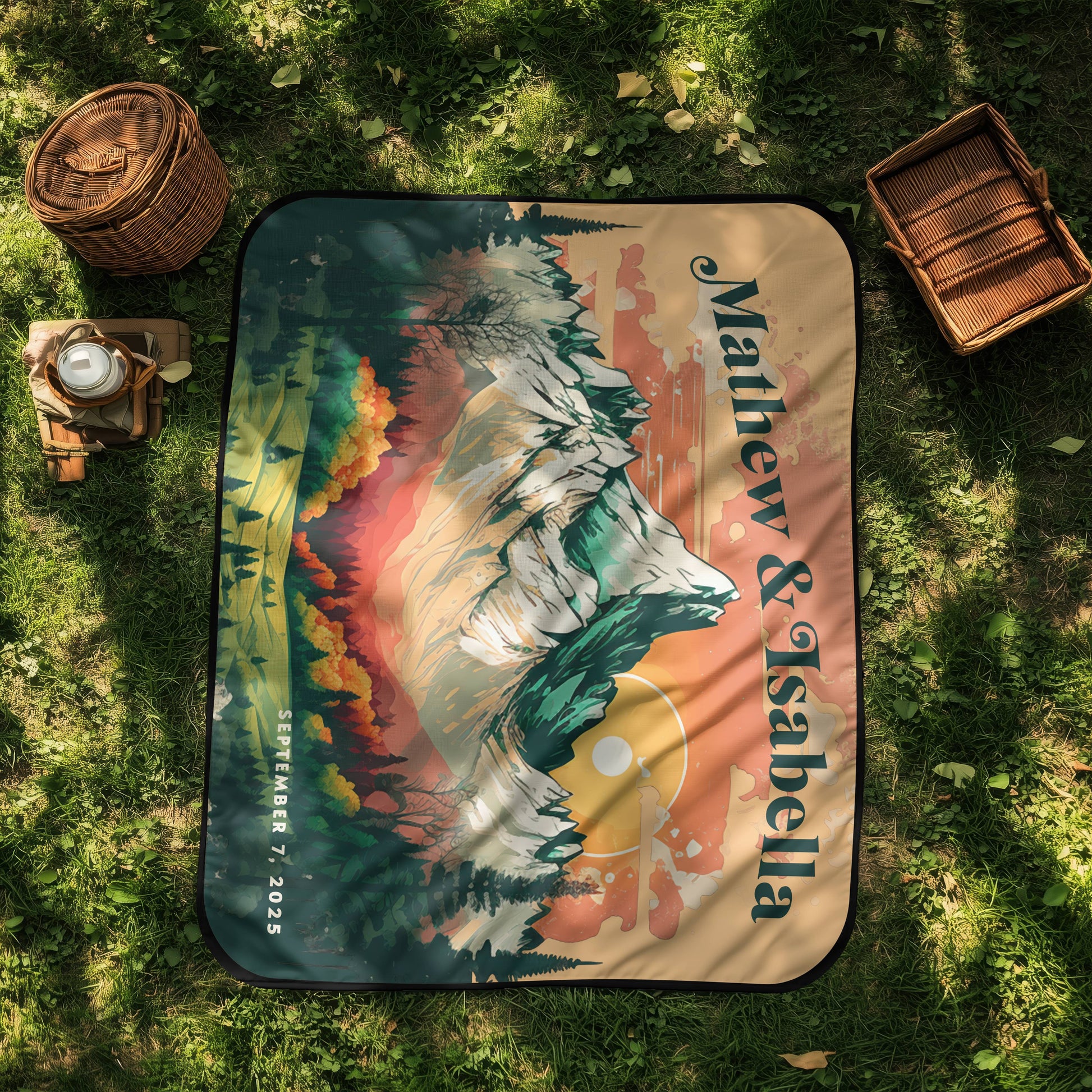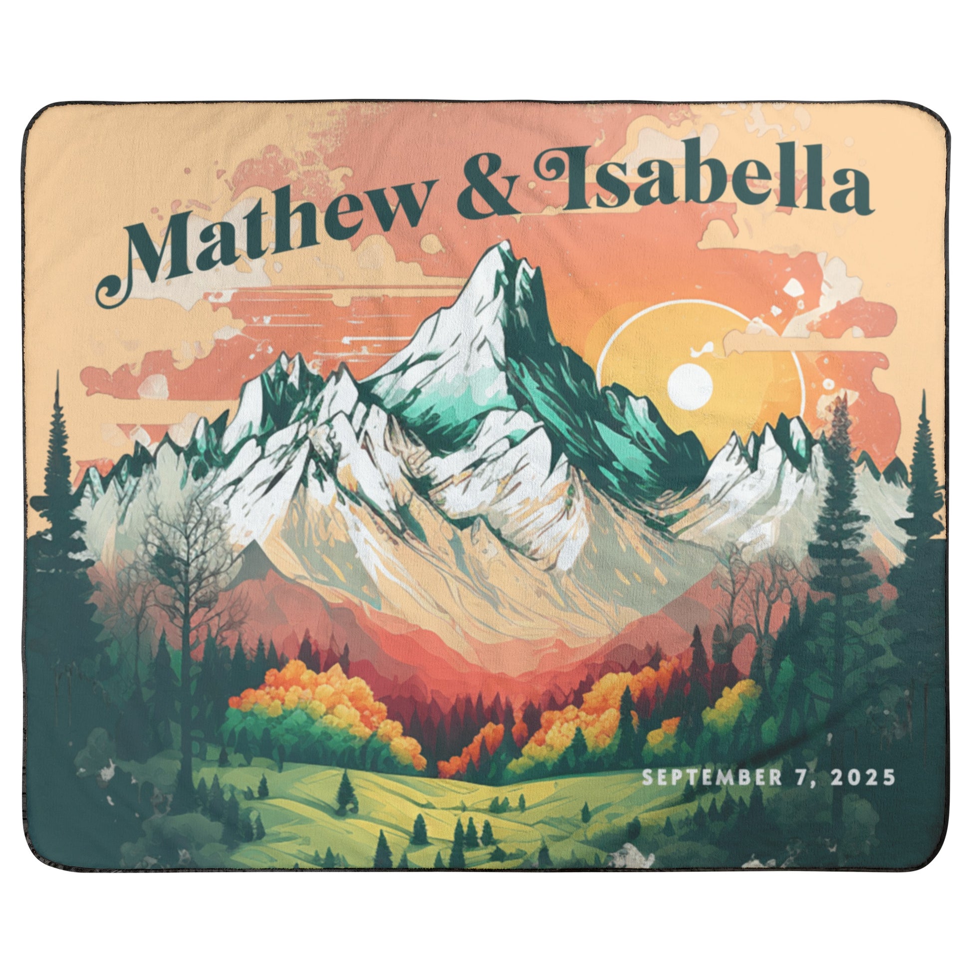Stay cozy, comfy and dry on your next camping trip with the Painted Peaks Blanket. Featuring a mountain sunset scene complete with customizable name and date. Enjoy the comfort and durability of our expertly crafted blanket.