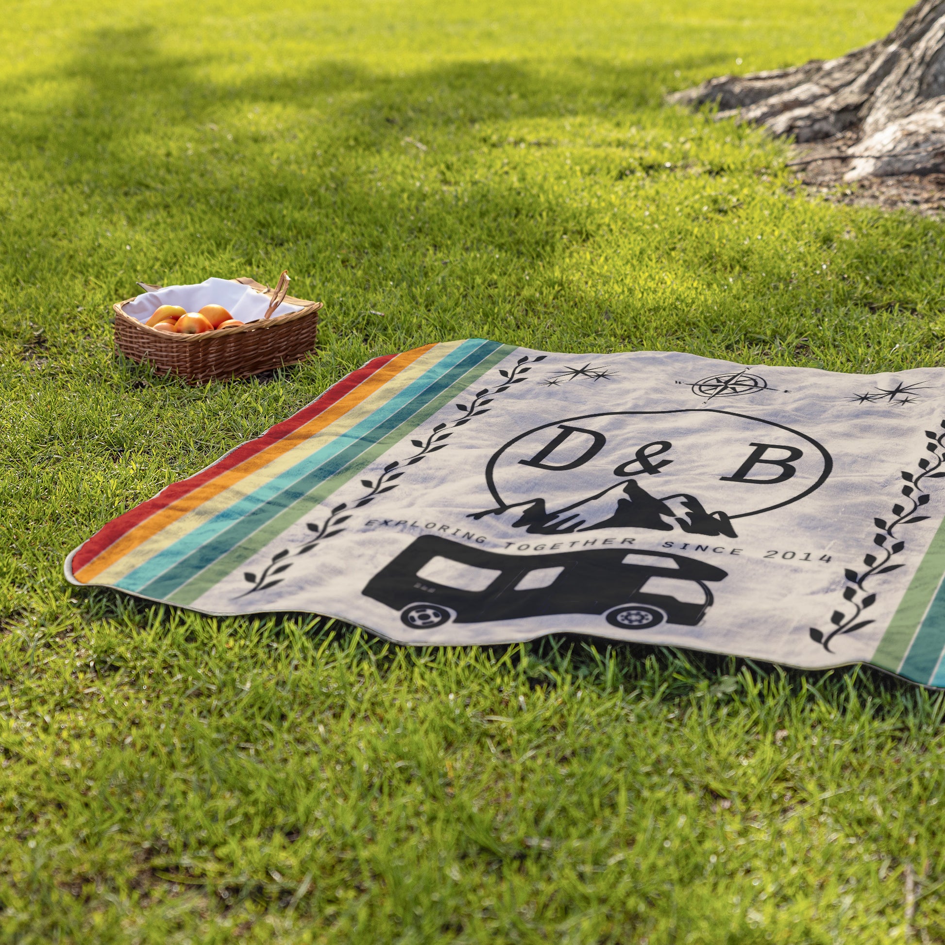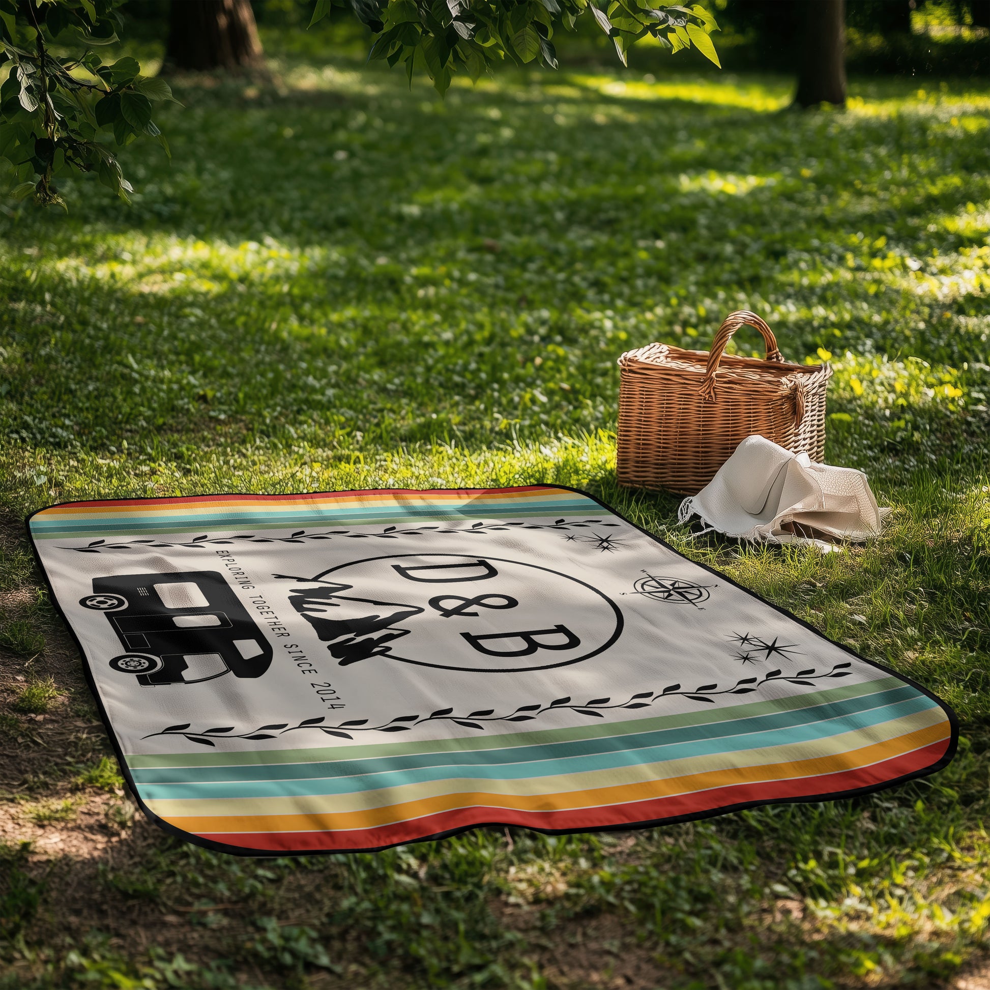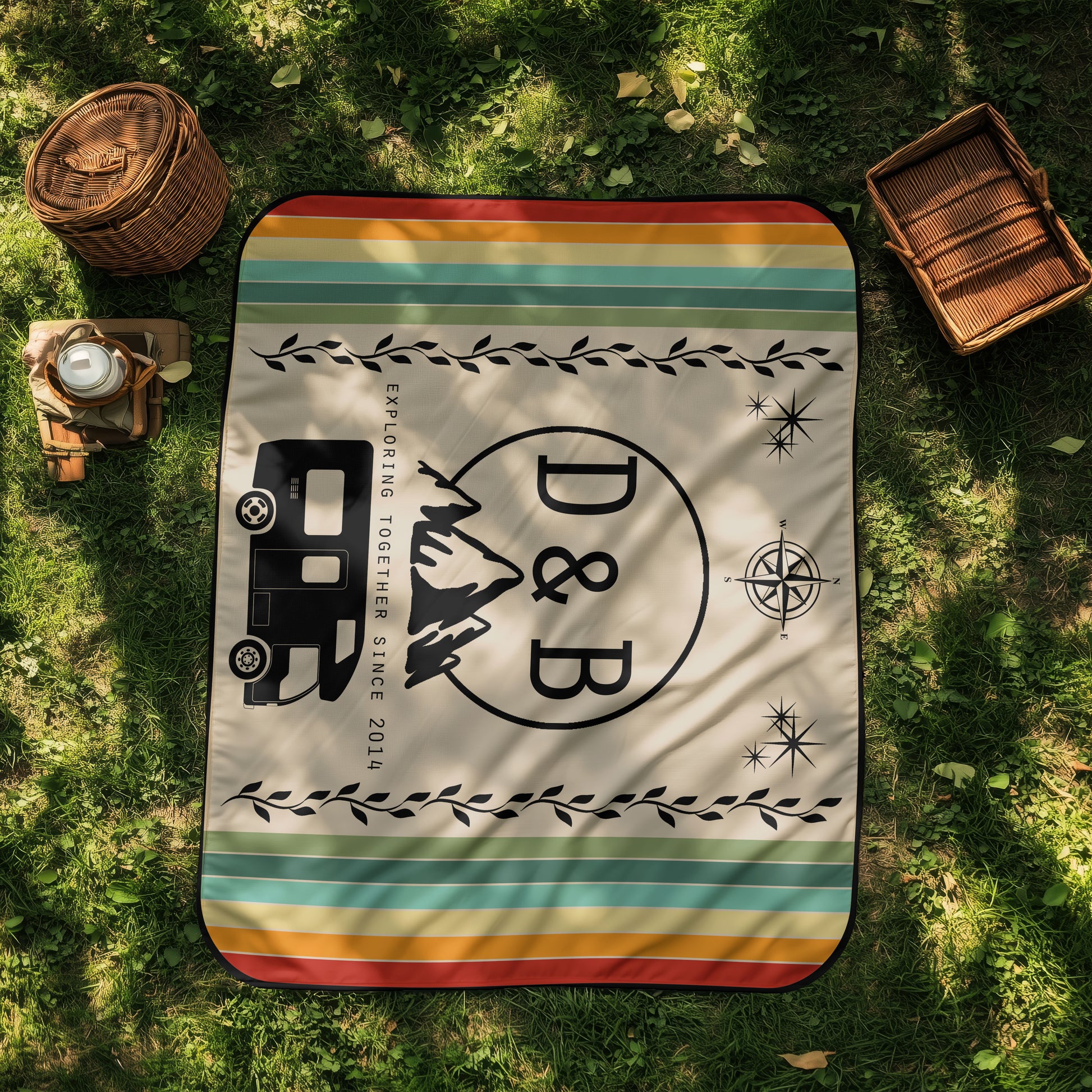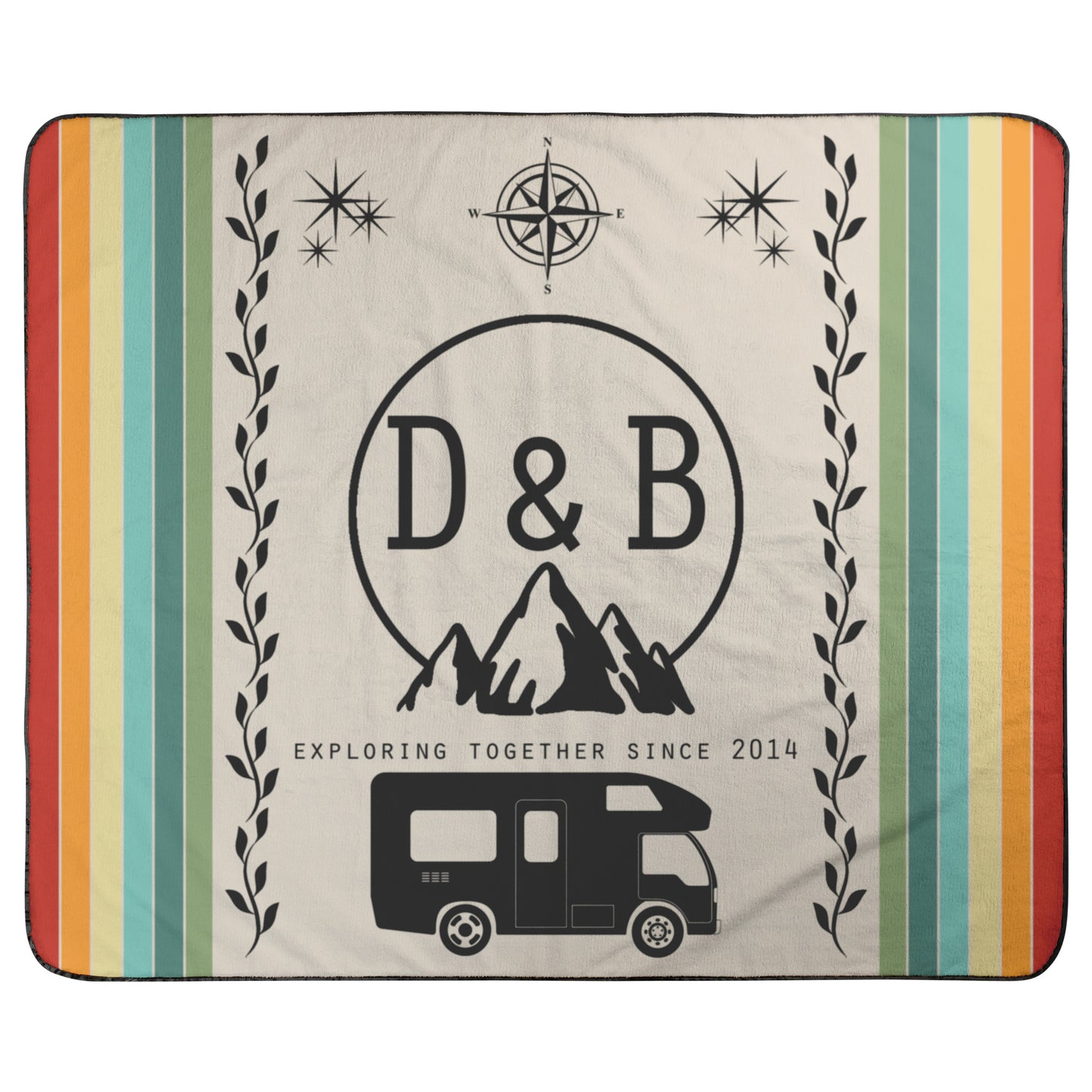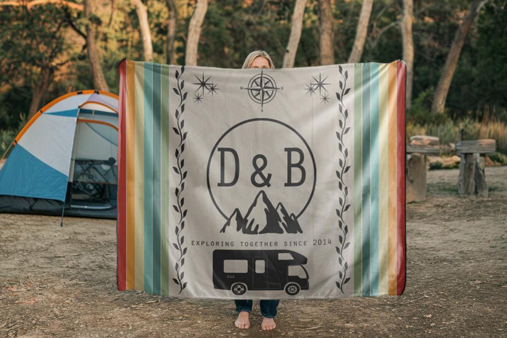 Stay cozy, comfy and dry on your next camping trip with our Mountain Motorhome Blanket. Featuring a retro motorhome, mountains and customizable initials and date. Enjoy the comfort and durability of our expertly crafted blanket.
