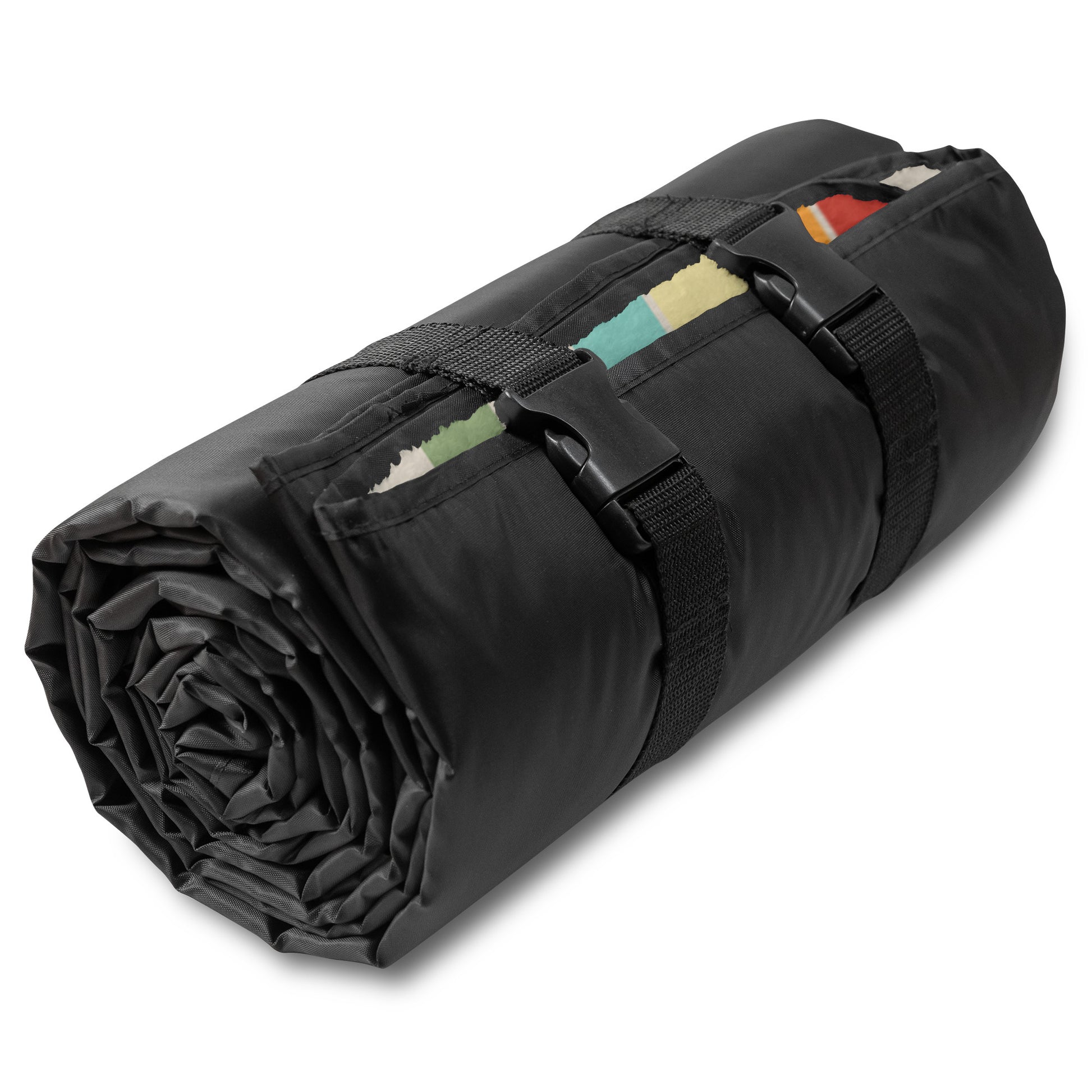 Easily roll this blanket and tie it down with quick clip buckles and carrying handles.
