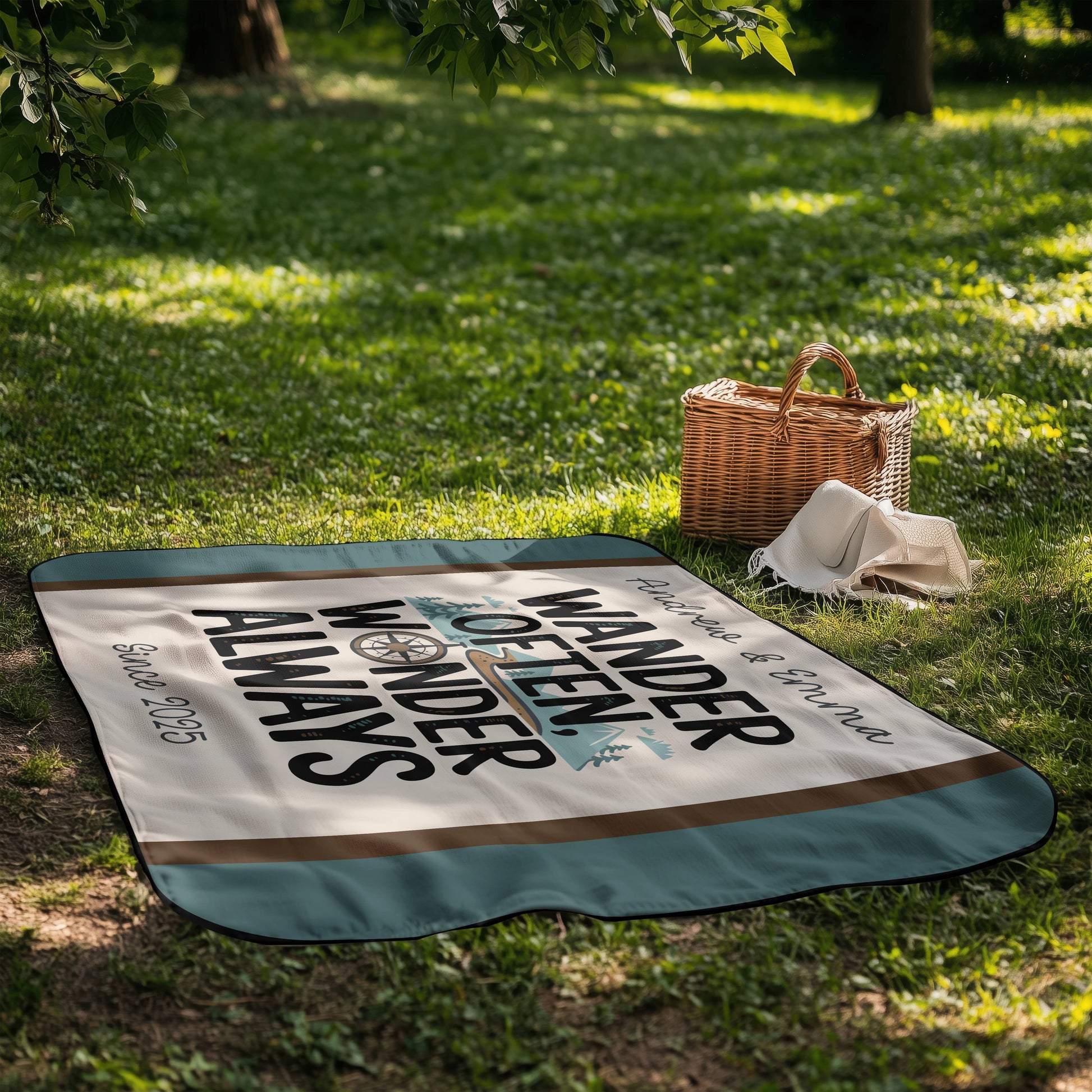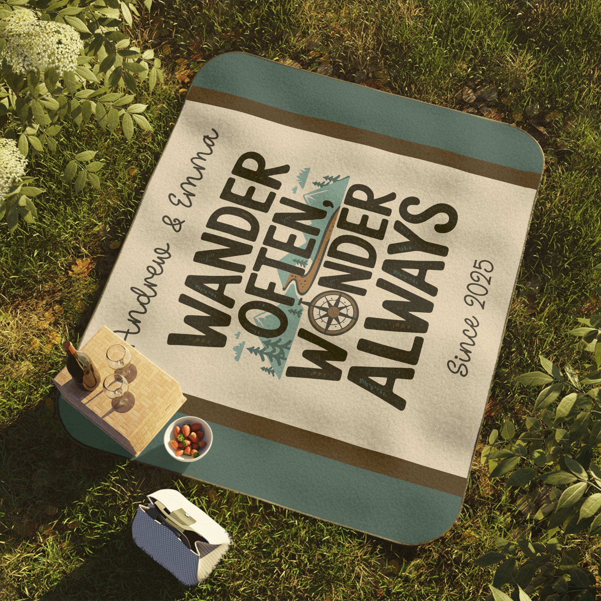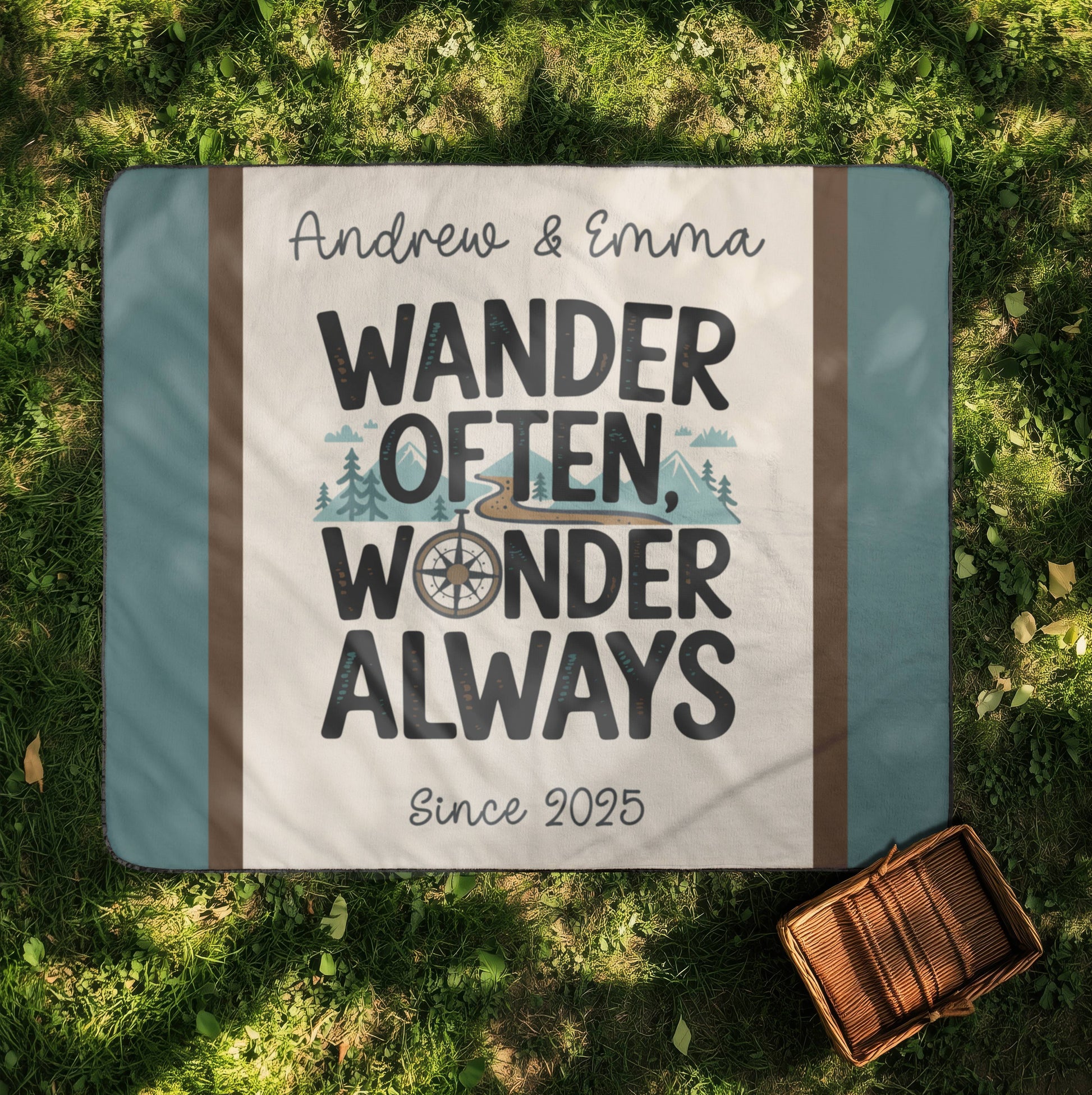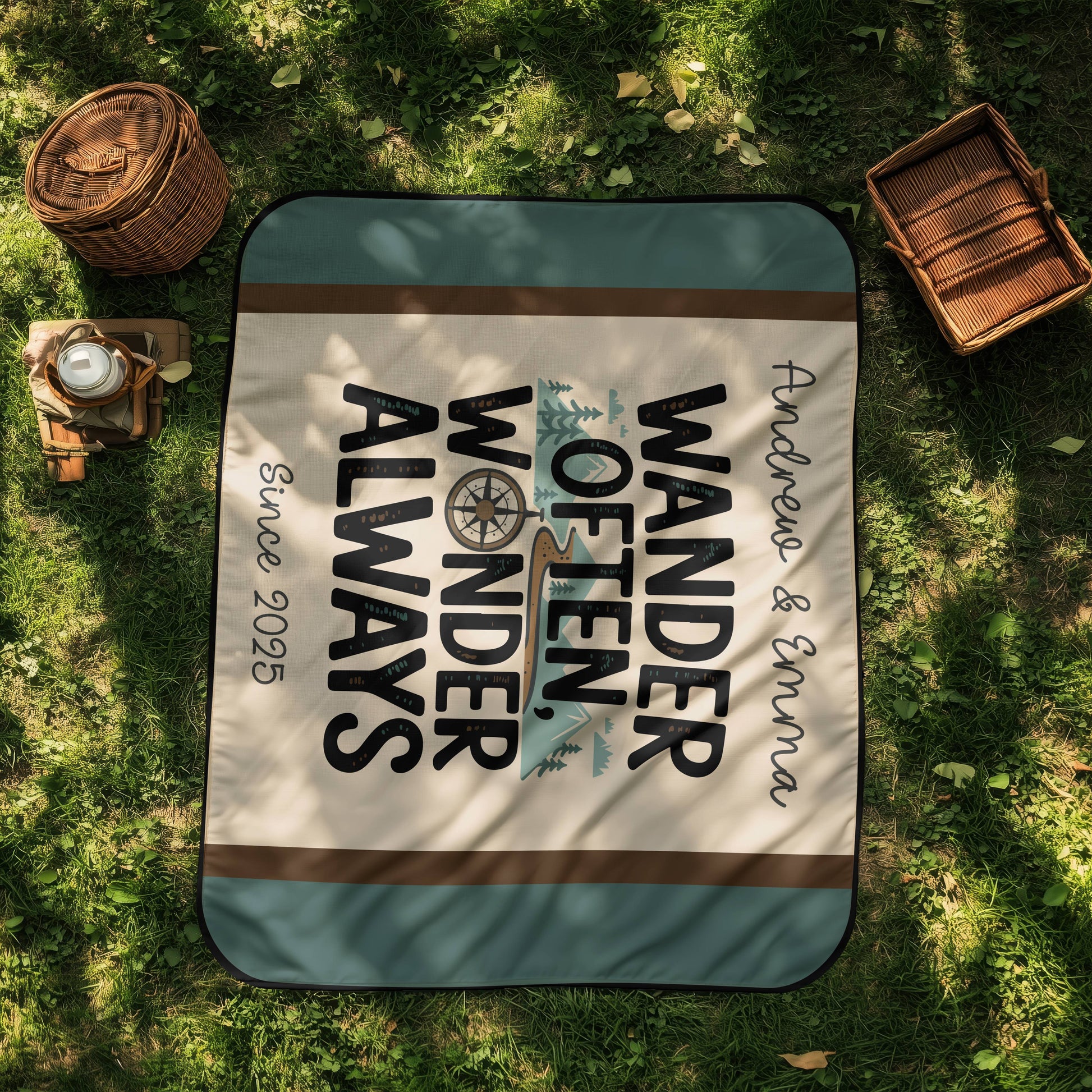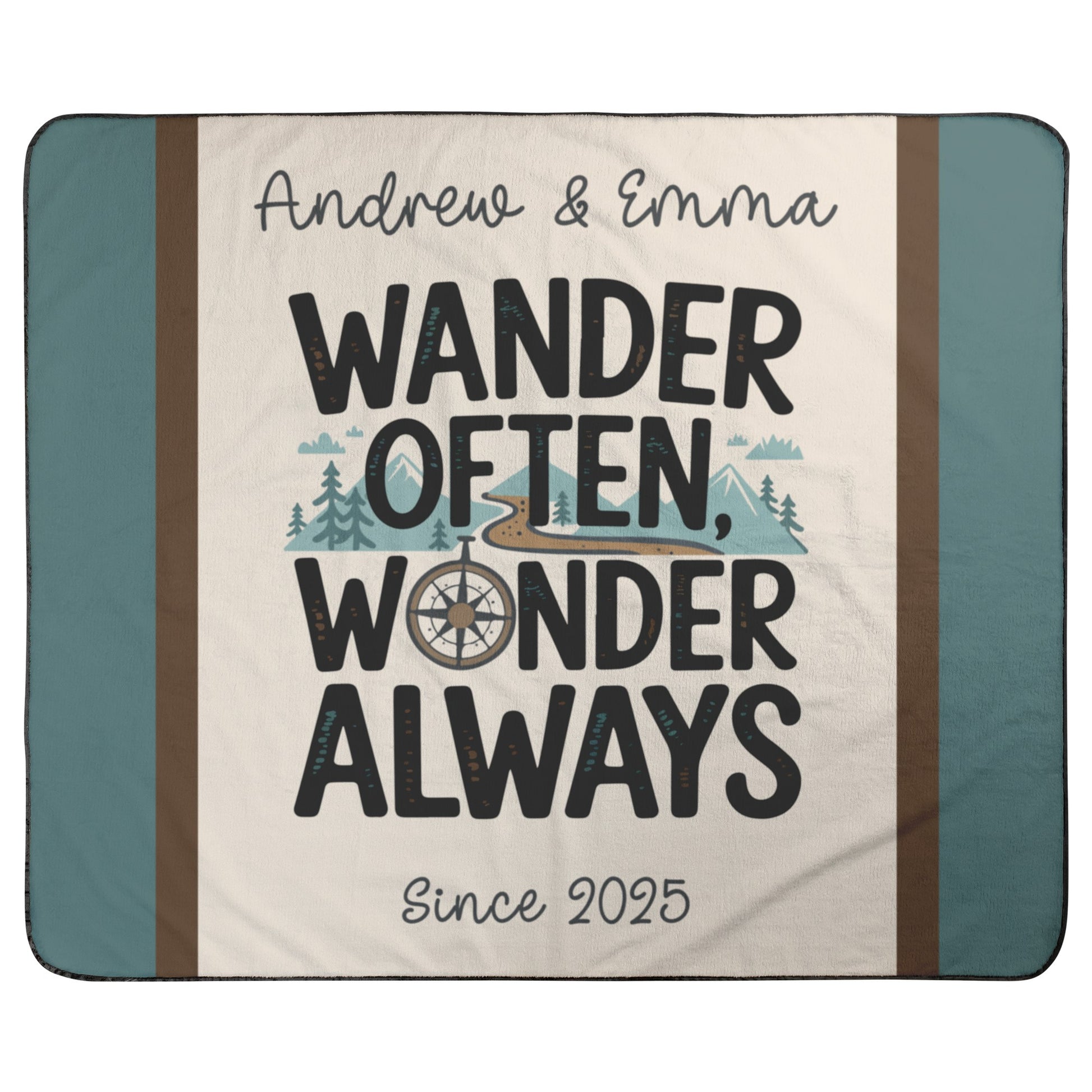 Stay cozy, comfy and dry on your next camping trip with our Wander Often Blanket. Featuring an adventure quote Wander Often, Wonder Always, plus customizable name and date. Enjoy the comfort and durability of our expertly crafted blanket.